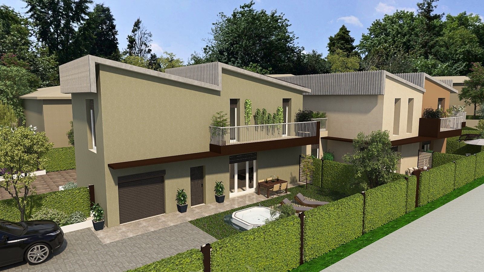 Il lotto B prevede la realizzazione di 5 villette indipendenti disposte su due piani: terra e primo, così disposte: